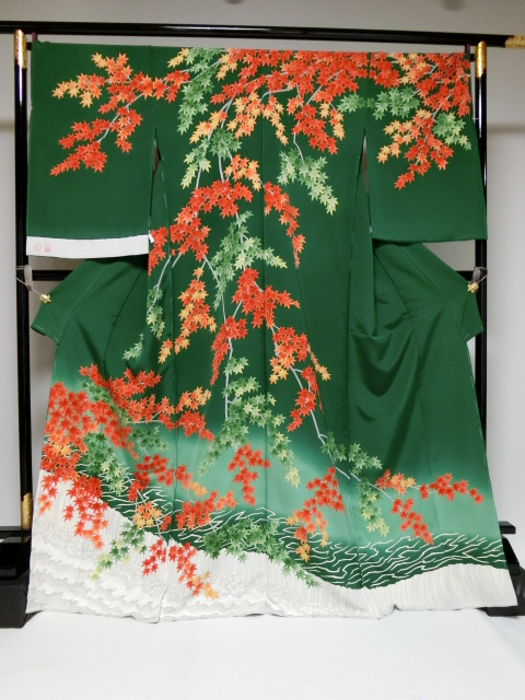 滝沢先生の最後の訪問着として、お待ちかね!エメラルドグリーンと パープルの訪問着のご紹介です。 滝沢先生独特の上品なパープルのお色が...