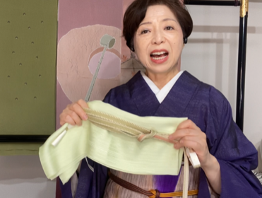 上:帯揚げ:日本の伝統色裏葉柳 税込12,100円