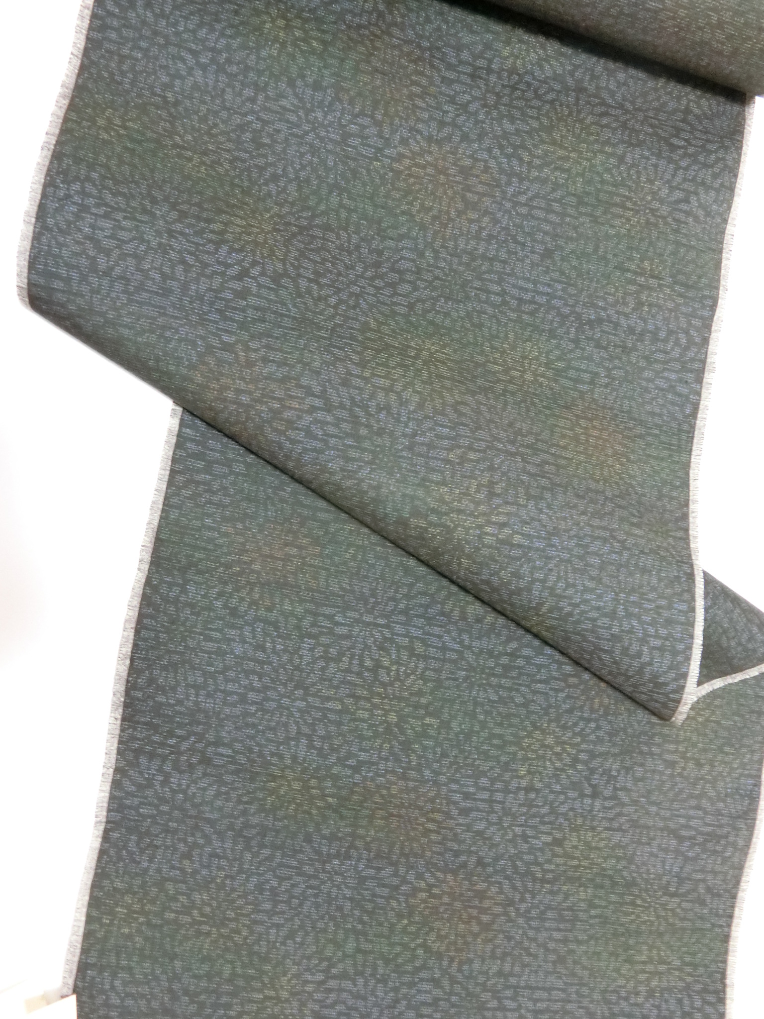 重要無形文化財本場結城紬160亀甲総柄 菊 濃い緑に色