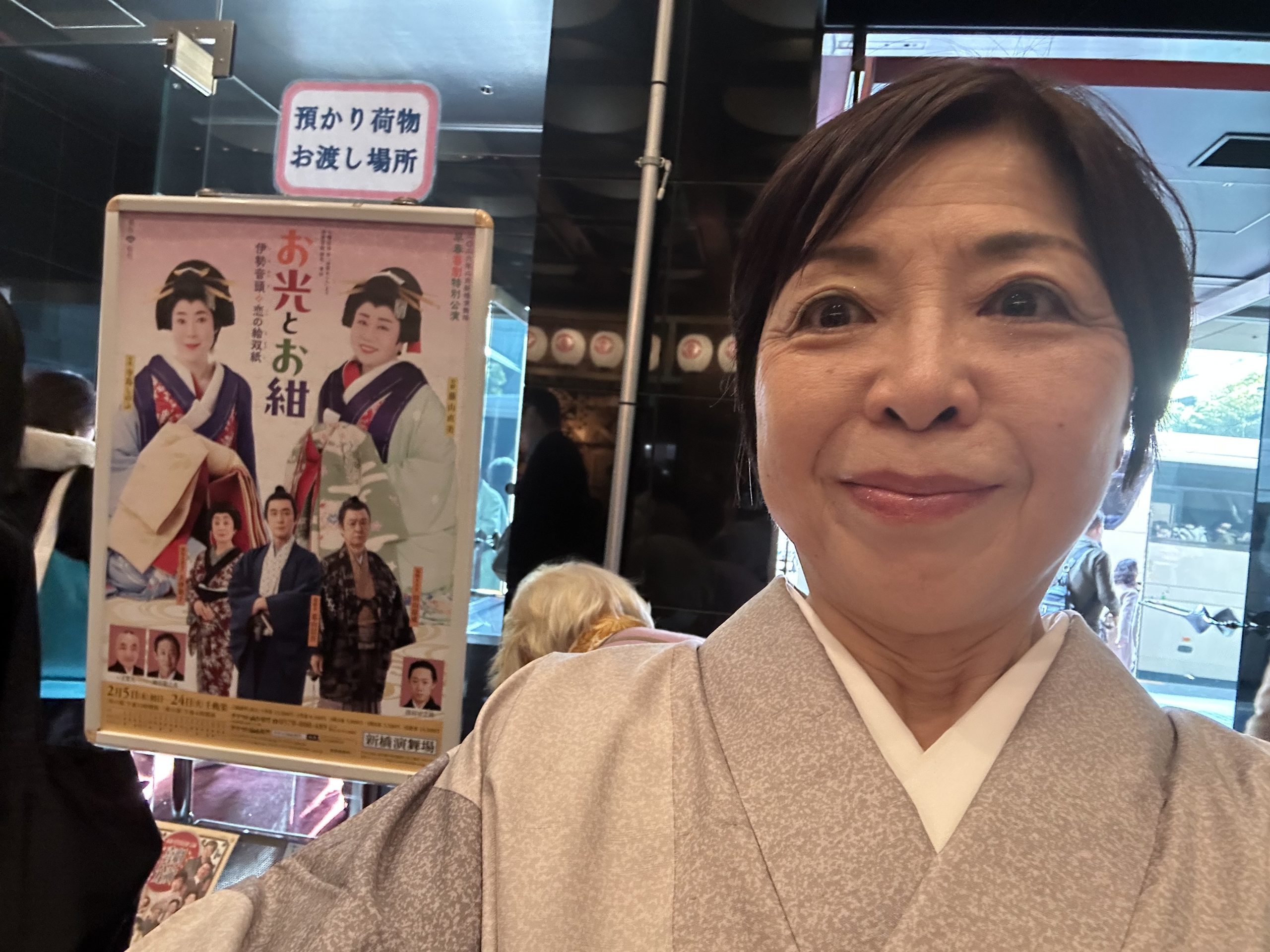 新橋演舞場でのお芝居観戦は、牛首紬の訪問着でした。