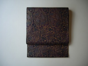 訪問着:しょうざん生紬 こげ茶地に更紗と袋帯 しょうざん茶