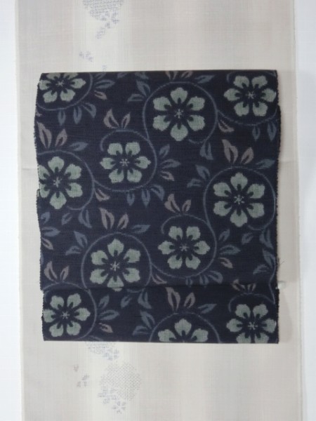 大島紬白地に青小花 と しょうざん生紬九寸名古屋帯