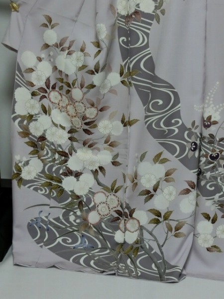 糸目友禅作家滝沢晃作 訪問着オンシジウム 薄いグレー地