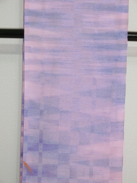 大変美しい色合いで、綺麗な明るいピンクと青いピンクが格子状に変化して織り上がっていて
