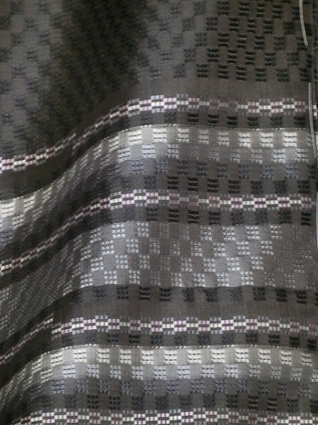 南風原花織手織り訪問着黒地にグレーと少しピンク 野原俊雄作 絹100%