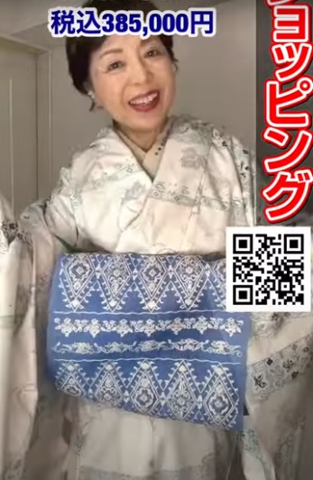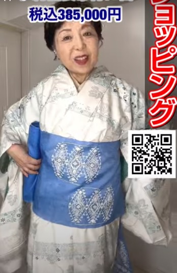 - 訪問着:しょうざん生紬 白に黒染め分け樹木に小花と袋帯 しょうざん生紬